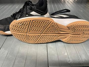 Scarpe pallamano ragazzo/ragazza taglia 37 , modello Adidas LIGRA taglia 37 colore bianco/nero . Usate poco e tenute bene , ancora come nuove . Senza scatola originale . Altre foto dettagliate . Ideale per chi comincia . Bendi x cambio misura .Euro 40