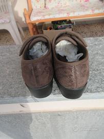 Scarpa pantofola comoda donna, colore beige scuro, suola in gomma, chiusura con feltro