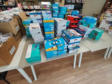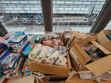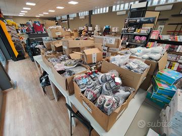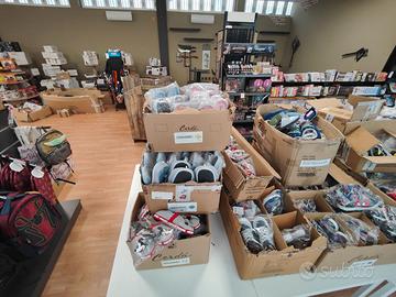 - N. 21 circa scatole di cartone, contenenti scarpe e pantofole bimbo - N. 7 buste grandi con circa 40 paia di pantofole per bimbo ciascuna - N. 90 paia circa di carpe bimbo - N.14 circa scatoloni contenenti calzini bimbo e adulto e lo scaffale sui quali i beni erano riposti I beni presentano varietà delle seguenti licenze: Disney, Marvel, DC Comics, Harry Potter, Star Wars In vendita all'asta il 30/04/2026. Per informazioni contattare Mercury Auctions