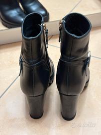 Stivaletti Patrizia Pepe. Materiale pelle con logo oro. Zip laterale. Suola in gomma e tacco alto. Misura 38. Condixioni perfette.
