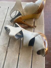 Bellissime scarpe con tacco 12 cm ma comodo plateau 2 cm per renderle comode e agevoli, donna, numero 37, colore grigio, poco usurate, usate pochissimo ma di sicuro effetto scenico. Peep toe ma simili a sabot/stivaletti adatte ad un autunno all’insegna del fashion.