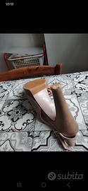 scarpe pelle beige con tacco alto, i gommini stando nella scatola si sono un pó seccati, e da una parte ne é venuto via un pezzettino, ma indossato non si nota