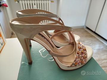 Scarpe usate in 1 occasione, come nuove, rosa, grigie e bianche con perline. 37
