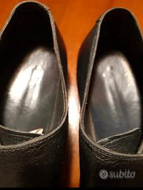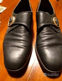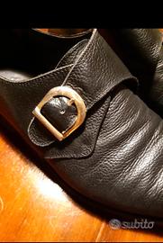 scarpe da uomo in pelle nera,, numero 43 , con fibbia dorata, suola in gomma