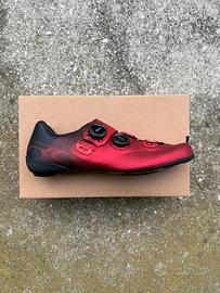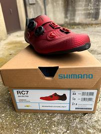 Vendo scarpe per bici da strada SHIMANO RC7, colore rosso e nero, suola in carbonio, allacciatura boa, ovviamente originali, nuove mai usate.