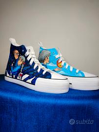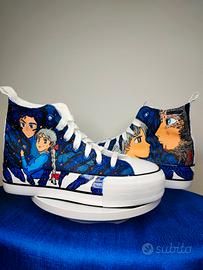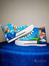 Scarpe personalizzate a mano, ispirate al film d'animazione "Il Castello errante di Howl". Per appassionati. Taglia scarpe n. 36