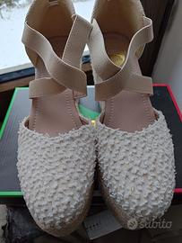 scarpe nuove mai portate, solo provate, non adatte al mio piede. comode con zeppa. dalla foto si può notare ancora l'etichetta. non ho più la scatola. € 7,00 più spedizione € 8. grazie