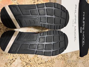 Vendo scarpe Philippe Model n 43( vanno bene per piedi da 27cm oppure per chi calza 44 scarpe da ginnastica) , scarpe usate un paio di volte se notate le suole non sono consumate, li vendo per inutilizzo ! Prezzo 110 come nuovo