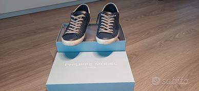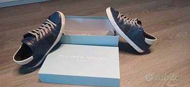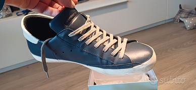 nr 43 , messe 4 volte, colore blu, lacci grigio, suola bianca.