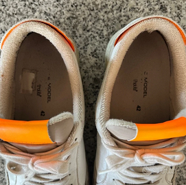 Vendo scarpe Philippe Model Paris da uomo, numero 42. Colore chiaro con dettagli arancioni, modello casual/sneakers. Le scarpe sono usate e presentano normali segni di utilizzo, come visibile in foto. Ancora comode e ideali per uso quotidiano. Per info, foto aggiuntive o proposta, contattami in privato.
