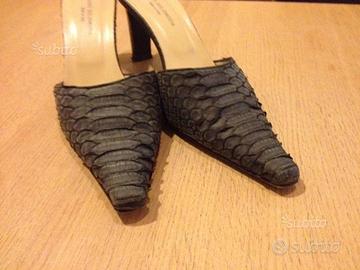 Scarpe Donna Sabot in pitone nero/blu taglia 39, interno pelle beige