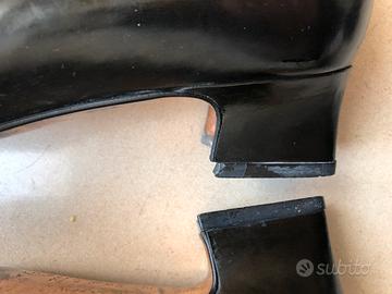 Scarpe Pollini un po’ datate, usate e tacco dietro da rifare. Color nero lucido, molto leggere. Si sono formate delle piegoline sul davanti, vedi foto ( na non sono creoate ). Natalina
