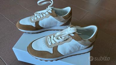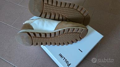Vendo un paio di sneakers Pollini, taglia 43. Sono in ottime condizioni, presentano una combinazione di colori bianco e marrone. La pelle è morbida e di alta qualità.