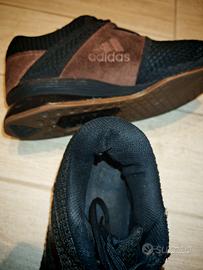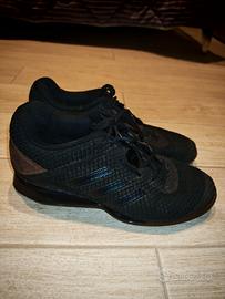 Vendo Adidas Adipower originali usate, taglia 42⅔, nere con parte scamosciata marrone. tallone alto 22mm circa. Ottime per principianti ed esperti. Segni di usura evidenti come in foto, in particolare internamente a livello del tallone.