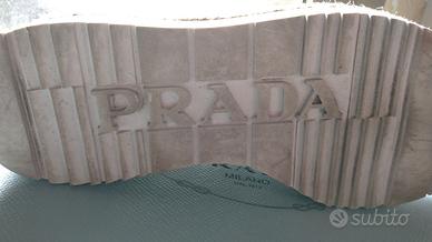 Solo spedizione Scarpe PRADA in pelle argento metallizzato caratterizzate da uno stile traforato, suola platform con dettaglio in rattan. Fatte in Italia. Condizioni usate ma molto buone. Lievi segni di usura. Dettagli Tipo:Donna Categoria:Scarpe Sottocategoria:Scarpe derby Designer:Prada Condizioni:Ottimo stato,due segni d usura interni Materiale:Pelle Colore:Argentato Taglia:35.5 -35 e mezzo