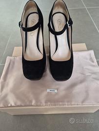 Scarpe Prada modello Mary Jane in suede nero e marrone, ottime condizioni, complete di scatola e dustbag.