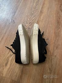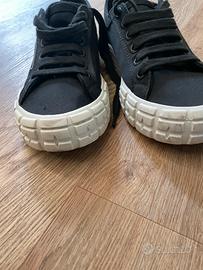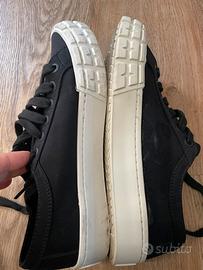 Scarpe PRADA Milano – Low Top Sneaker (Linea Wheel) Sneakers PRADA Milano originali da uomo, colore nero, con suola in gomma bianca e logo triangolare laterale. Taglia 40/41. Indossate 2 volte forse. Logo interno “PRADA – Made in Italy” e codice visibile all’interno. Codice interno 2E0301 Sneakers comode e versatili, ideali per uso quotidiano.