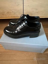Prada Scarpe all inglese allacciate tg 37,5 eccellenti condizioni comodissime in pelle spazzolata dal design unico complete di scatola dust e cartellini
