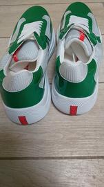 Scarpe Prada Sneakers Americas' Cup n°42 bianche e verdi nuove, con fattura di acquisto e sacchetto con logo Prada