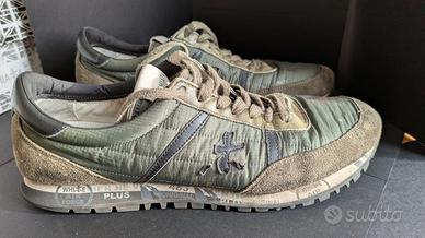 Vendo scarpe Premiata Sean-7210 Taglia 44 Modello Particolare con motivi pennellati originali che ne fanno un tocco molto personalizzato. Colore predominante verde. Scatola originale.