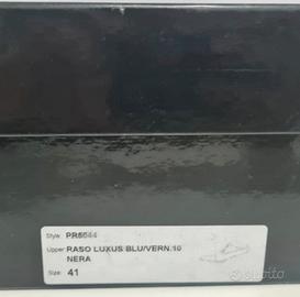 Scarpe da uomo eleganti Première Maison, taglia 41 nere lucide con dettaglio in raso blu. usate una sola volta per il matrimonio.