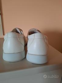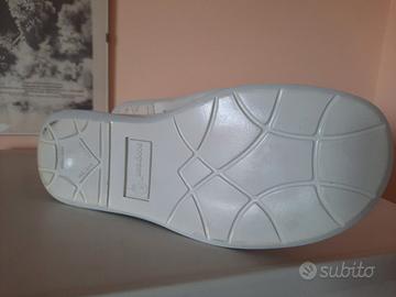Scarpa ospedaliera chiusa con velcro quindi regolabile. In pelle bianca cm. 28 misurate sotto la suola punta tacco.