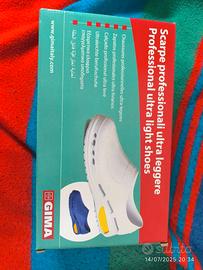 scarpe professionali ultraleggere sanitarie bianche, nuove in confezine originale, adatte a uso sanitarto per infermieri, oss, medici, o professionisti vari.