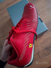 Scarpe Puma 43 Rosso Ferrari sono usate, leggermente usurate come da foto, esternamente si nota soprattutto quel taglio in foto 4 e 5 sulla parte destra della scarpa alla destra del logo Ferrari. Introvabili rosse con materiale gomma che conferiscono eleganza ad una scarpa prettamente sportiva.