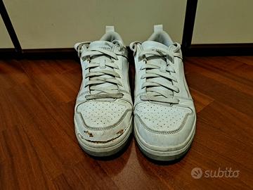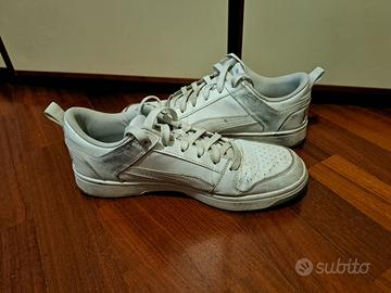 Scarpe Puma bianche caven 2.0 in condizioni discrete, sporche (ma sono pulibili), con una delle due scarpe che si è scollata ma la si può riattaccare con della colla per scarpe. Comode, taglia 43