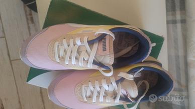 scarpe Puma Cruise Rider Silk Road Wn's colori pastello rosa, lilla, giallo, bianco e blu usate pochissimo scatola originale