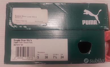 scarpe Puma ragazza / donna in pelle scamosciata color rosa conchiglia modello Basket Bow Luxe woman's nuove con scatola. Misura 38 EU - UK 5 lunghezza suola 26 cm e suola interna 24 5 cm. Svendo x errato acquisto!