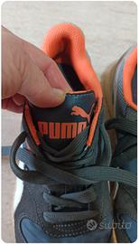 Vendo a 14€ Scarpe da ginnastica PUMA che ha inserti di colore arancione e lacci grigi. RITIRO IN ZONA