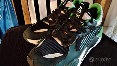 La famiglia Rs-x è sinonimo di re-immaginazione,tecnologia RS sull'intersuola silhouette ingombrante,tomaia in rete e tessuto,sovrapposizioni in pelle ,tallone in tessuto goffrato .