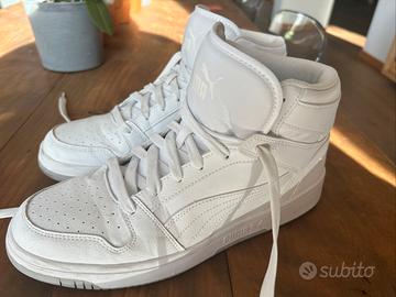 Scarpe PUMA Rebound White usate, taglia 44,5 ottime condizioni se non per una piccola scucitura vicino all’etichetta.