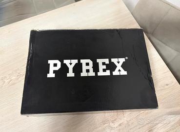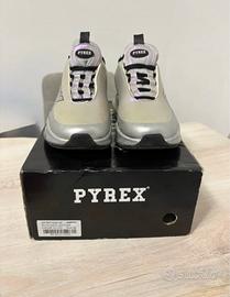 Scarpe Pyrex. - Tomaia in materiale iridescente. - Dettagli neri a contrasto. - Suola con unità Air visibile. Scarpe pyrex mai usate perché ho acquistato il numero troppo grande. Sono 39 incluse di scatola e copertura originale. Per info chiedete pure. Le scarpe alla luce risultano cromate