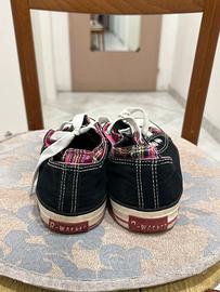 Vendo sneakers R-Walker taglia 38, modello basso in tela nera con interni a quadri multicolor e fucsia. Un modello comodo e alla moda, perfetto per chi cerca una scarpa versatile da usare tutti i giorni o per attività sportiva leggera.