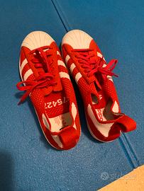 Scarpe sportive numero 38, colore bianco e rosso. Usate pochissimo per errato numero