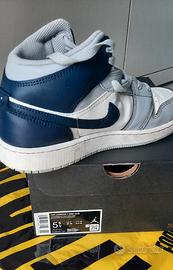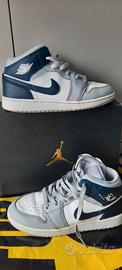 Scarpe ragazzo AIR JORDAN 1 MID originali, colore Navy / wolf grey , taglia 38 usate ma tenute bene . Complete di scatola