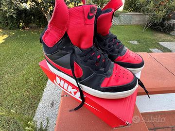 Scarpe ginniche tipo basketball alte "Nike" per ragazzo/a 5Y (37.5 eu) nere rosse e bianche, ottime condizioni. Ritiro a mano dopo visione prova, zone Lucca, Pisa, Firenze. Prezzo ribassato.
