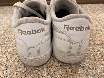 Paio di scarpe Reebok Club C 85 di colore bianco con suola “Gum” (gomma color miele). Logo Union Jack laterale e logo Reebok sul tallone. Le scarpe sono state indossate e si trovano in buone condizioni generali, ma presentano normali segni di utilizzo (come visibile in foto): * Tomaia: La pelle è integra, con qualche leggera piega naturale e qualche piccolo segno superficiale. * Suola: In gomma color miele, con battistrada ancora in ottimo stato e pochissima usura. * Interni: Puliti, con leggera usura superficiale sulla soletta interna. * Lacci: Originali, leggermente ingrigiti dal tempo ma perfettamente integri. Nonostante l'uso, la struttura della scarpa è ancora molto solida e la suola non è consumata sui bordi. Taglia EU 37.5