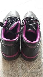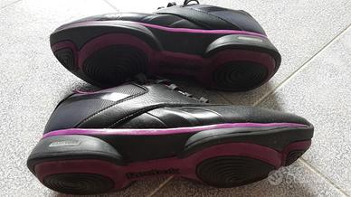 Scarpe marca Reebok, modello easytone, usate, in buone condizioni, colore nero con finiture rosa intenso, taglia 40,5.
