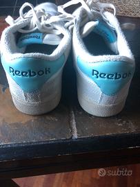 Vendo scarpe reebok in pelle bianche cin inserti azzurri, tg 43 utilizzate 5/6 volte al massimo.