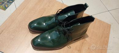 Scarpe retrò usate per uno shooting vestono un 46. Sintetiche effetto vernice.