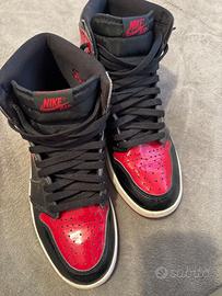 Scarpe Nike air Jordan , rosso e nero lucido, con cambio lacci rosso/nero. usate pochissimo misura 44
