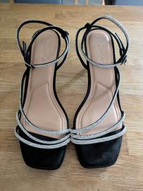 Newlook nero sparkly partito tacco basso comfort sandali taglia 8 largo