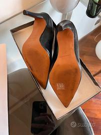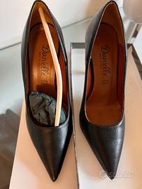 Décolleté da donna nere con punta affusolata e tacco a spillo alto. Realizzate in pelle donano eleganza e femminilità ad ogni look. Perfette per cerimonie, eventi speciali o outfit da sera, slanciano la silhouette mantenendo uno stile sofisticato e senza tempo, le scarpe in questione sono state usate una sola volta praticamente inutilizzate come si vede dalle foto