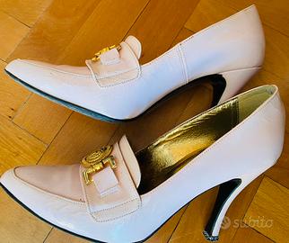 Scarpe con tacco 10 centimetri colore risa e fibbia oro USATE (nelle foto segno di usura)