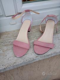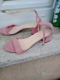 vendo scarpe rosa da donna per primavera e estate con tacco basso e laccetto