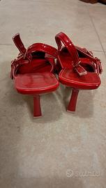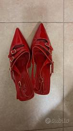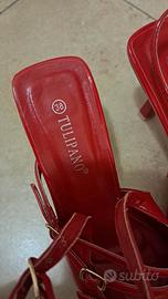 Scarpe rosse con tacco e fibbie Tulipano. Cinturini regolabili, altezza tacco 6/7cm, presentano leggere ammaccature sulle punte e ai talloni poco visibili. Vendo per taglia errata. Annuncio presente qui solo per visibilità, preferisco acquisto con altra piattaforma perchè qui sono stata truffata.