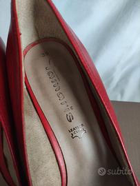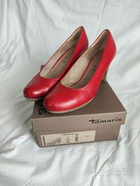 Scarpe in cuoio rosse. Usate poco. Ottime condizioni. Tg 39. Tacco 8 cm. Piccola zeppa di 1 cm . Marca Tamaris